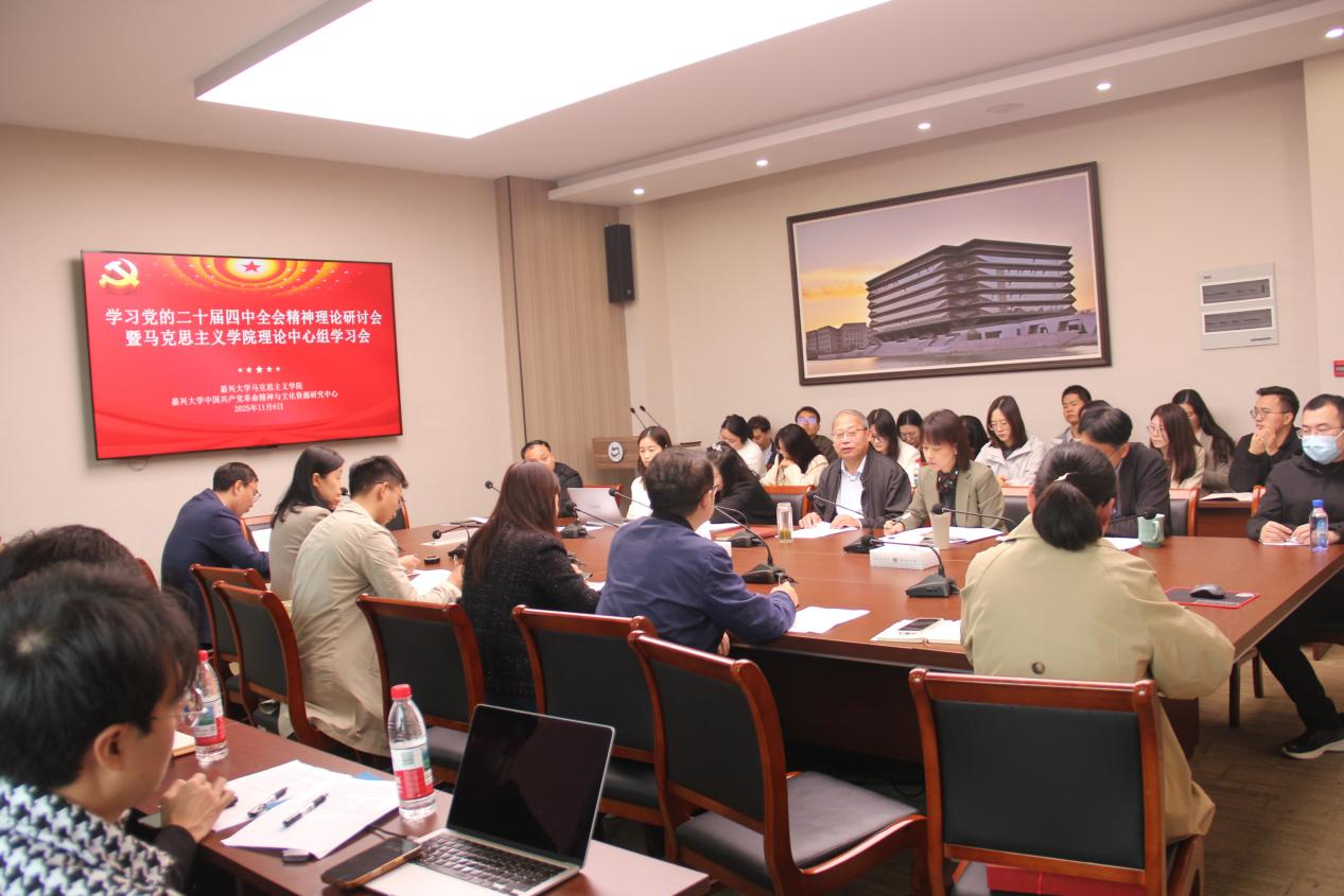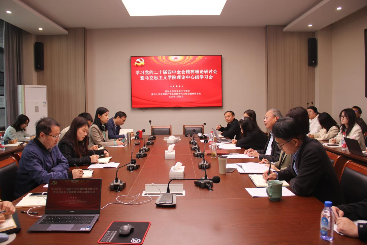 党委理论中心组学习会,围绕学习贯彻党的二十届四中全会精神开展交流研讨。学院领导班子成员、理论中心组成员、研究所负责人、部分教师参加。会议由学院学术副院长余玉湖主持。