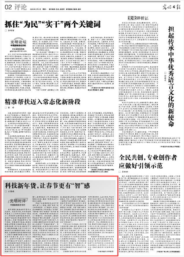 王国雨教授在《光明日报》发表文章《科技新年货,让春节更有“智”感》。